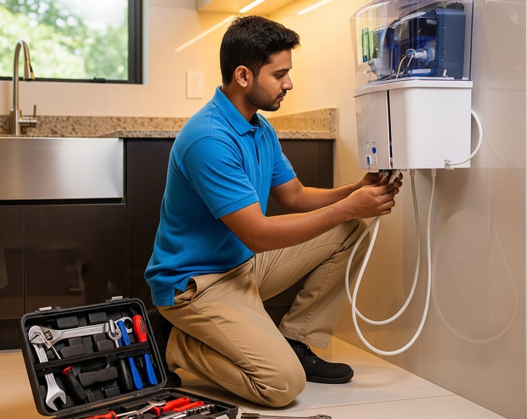 Expert RO and water purifier repair, installation, and maintenance services in Ahmedabad. We service all major brands - Aquaguard, Kent, Pureit, Livpure, Blue Star. Our certified technicians provide same-day service with genuine parts and 3-month warranty. From filter replacement to complete system repair, we ensure clean, safe drinking water for your family.
